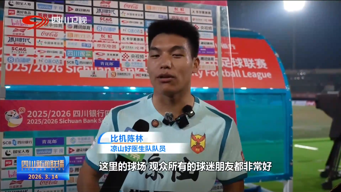 凉山好医生队队员 比机陈林:这里的球场、观众,所有的球迷朋友都非常好,还有我们这么多从这么远来的凉山的助威团,他们也给了我们很多的信心。
