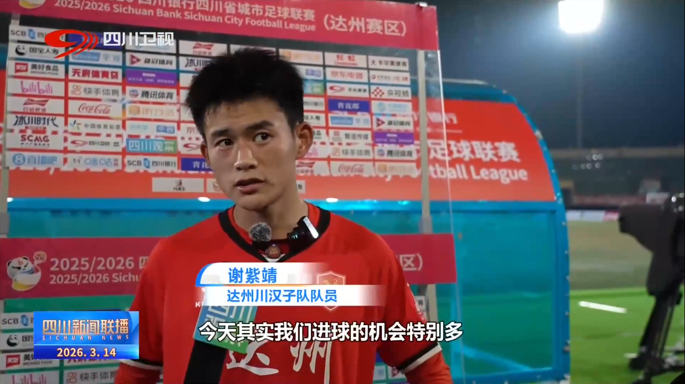 达州川汉子队队员 谢紫靖:大家也看到了,今天其实我们进球的机会特别多,但是都没有把握住,但是那个任意球,运气比较好,把握住了,然后就是为球队扳平了比分吧,还是特别激动的。