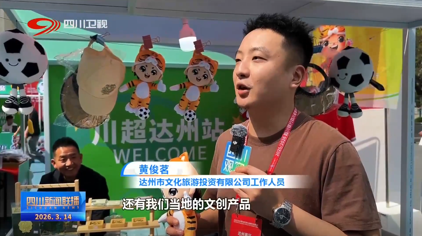 达州市文化旅游投资有限公司工作人员 黄俊茗:在市集上,除了吃的,还有我们当地的文创产品。我手上这个就是达州的文旅吉祥物巴小虎,专门为川超做的一个足球运动员的版本,也是这次定制的版本。希望大家可以把它们带回家。